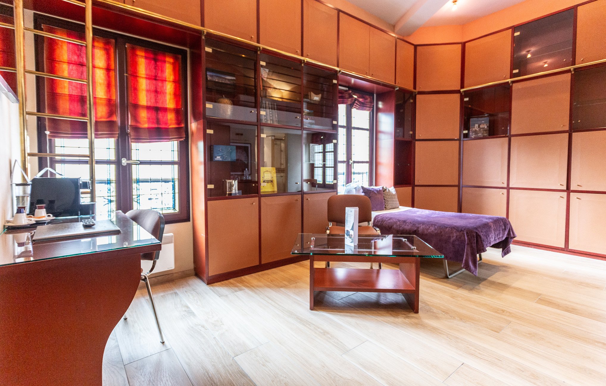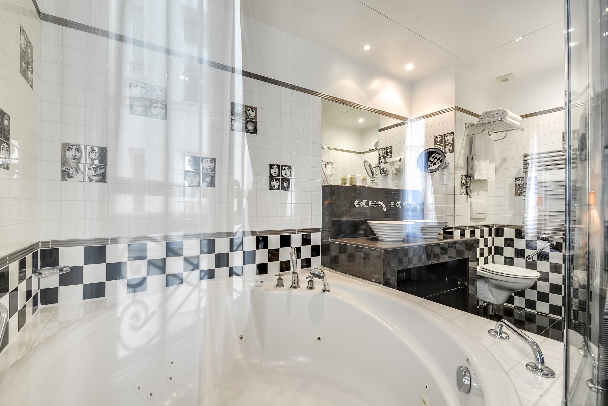 在精心粉刷的墙壁和刻着酒店签名的后面,一切的厅堂房间布置都为了让温暖的阳光能够照射进来。即使位于巴黎市中心,酒店一心只为您营造一个温馨的家的感受。黑白双色交融的肃穆给房间添上了一笔现代化美感,房间内的浴室采用了意大利的Fornasetti 瓷釉设计,其诗意,只可意会。酒店的房间部分朝向中央庭院,您可以安心地敞开窗户,享受清晨起洒进房间的第一道阳光。无论是经典房还是双层公寓房间,双人豪华房或是带有按摩浴缸的特选房,每一场入住都将是一份美好的回忆。